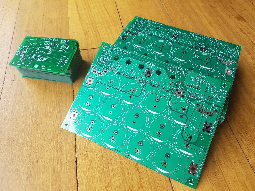 The boards have arrived today. I ordered them 15th May. This is 12 days or so turnaround. Last night I ordered 25 of the version 2 brainboards with the added trimpot and 3 pin header for the over current sense. There are choices to be made I suppose. I post you the boards, including version 1 brainboards now. And post again v.2 brainboards later. You end up paying 2x postage. or I wait and post both brainboard versions with the power boards. so that's 1x postage. ![]() Shallowal: the date typo is going to be a feature I'm afraid. Too late to change. Nicks: That's probably a good idea but I tend to do the experimenting using flying wires. The over current sense works perfectly well with 6 inch wires everywhere picking up EMI etc. Wiseguy: The tiny vias are built in from EasyEDA PCB editor, I use defaults. Since JCLPCB is closely aligned with EAsyEDA I figure their users would be given cost effective and sensible defaults. When ordering the boards I found no option to reduce cost by via diameter choices. I reckon the vias are done with a laser and the sizes they get the easiest are the sizes baked into EasyEDA defaults. Who knows. I too was looking at cap choices. The one in the parts list is just a start point and there are better options with lower cost & better performance. I think I will use 1,000uF 200V caps with 4A ripple, maybe mix 4 x 1000 + 1 x 470 for the DC supply, and 2 x 1000 + 1 x 470 on the output. Don't know yet. But it would be best to keep the total capacitance to about 4,250uF and 2,350uF so that the firmware has a chance to work well. +/- 30% or so.. Probably well worth the time to have a look at digikey's caps, those ones you found look ideal and cost effective. I find RS to be a lot slower with COVID19, I think I will start an account at digikey. There will be a few changes to the build as we go. For a start, the 2K7 on the input voltage divider (with the 47K) is too high for voltages over about 90V. Depending on your application, you might be OK with this. Else a different resistor will be needed. I calculate 2K should be good for 120V input, to give the Nano a less than 5V input to the ADC channel, about 4.9V actually. I attach a good sized rendering of the power board schematic for reference. Screen Shot 2020-05-30 at 10.28.02 am.png.zip Last night I had a prototype pumping 3kW into the 1 Ohm Blue Bucket of Resistance. No problems. Since I have built 3 boards using Nick's PCB, maybe it's time to rip the parts off one and build one using Wiseguy's... wronger than a phone book full of wrong phone numbers |