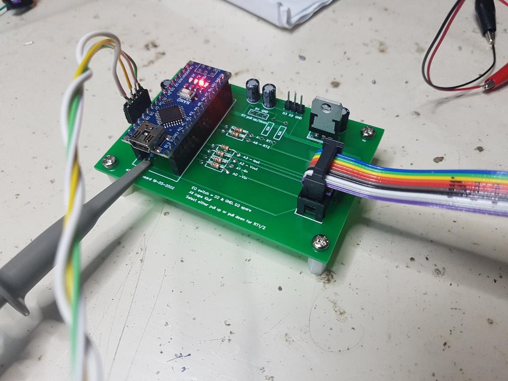 good progress with code. I have settled on an unpleasant choice in the project. I suspect I2C interface can on occasion cause some mistiming with the pwm, particularly when in NIGHT mode. I don't like it. When using the arduino softwareserial library, I find no problems at all. This has resulted in a couple of things. The I2C 4 pin connector is not needed for I2C. But we can re-purpose one of the pins to be TX for softwareserial. I choose A5 which was used for the I2C and so we can still use the 4 pin connector. This means you need another nano, to do the translation from serial to IC2. I had a quick look and saw no 20x4 LCD with serial input on aliexpress. They all seem to have I2C. Maybe we can find them somewhere. I have tested: - mppt -> absorb transtion - absorb timer, which leads to.. - transition to float - EQ, to run for a define time - EQ cancel due to low bv, then back to mppt/absorb - float cancel due to low bv, leading back to mppt/absorb - timeout for bv drop while in EQ - timeout for bv drop while in absorb - timeout for bv drop while in float The "hardware" overcurrent still works fine, and once triggered pwm goes to near zero and after 60 seconds, it permits normal operation. Which is a max power scan and into mppt track mode. Lots of things are set up via the usb serial console. Here is what it looks like now: A - max heat sink temp 100 degC B - max inductor temp 100 degC C - cal. Input Volts 0.0885 ( 28.14 V) D - cal. Output Volts 0.0893 ( 12.68 V) E - cal. Input Amps 0.1173 ( 0.12 A) F - cal. Output Amps 0.1173 ( -0.00 A) G - zero Iin sensor 518 ADC counts H - zero Iout sensor 518 ADC counts I - Max battery Volts 15.00 Volts J - Absorb voltage 13.50 Volts K - Absorb tolerence 0.50 Volts L - Maximum Current 30.00 Amps M - Night power 10.00 Watts N - Zero Energy total 0.00 kW.hr O - Equalisation voltage 15.00 Volts P - EQ duration 60.00 minutes Q - EQ reset voltage 14.50 Volts R - Absorb duration 60.00 minutes S - Float voltage 12.70 Volts T - Float tolerence 0.50 Volts U - fast OC enable 1 (ON = 1, OFF = 0) Z - Write defaults We can choose to enable the hardware overcurrent protection now. If you choose to not build in the current sensor needed for this, disabling it might be the way to go. The brainboard will need a bit of extra soldering, for the overcurrent protection. Two wires for the set point and current signal, one for 5V, one for ground. And a trimpot to set the setpoint. Not too bad. Maybe add this to v2 of the board. wronger than a phone book full of wrong phone numbers |