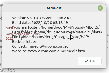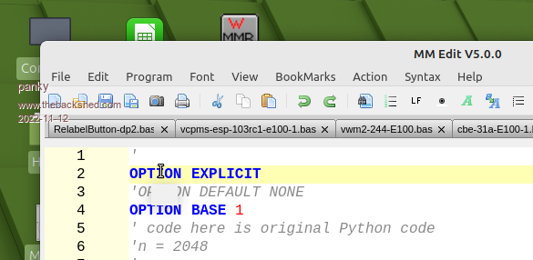 I have squashed the bugs exposed by Bill and uploaded a new version to my website. I have even included an update for RPi. Some of the bugs were rather obscure and I thank Bill for his reports with advice on how to reproduce them. With the Syntax Help button, if your text cursor is in a keyword, the button opens the help at that page, otherwise it opens the help index. I have now started increasing the version number with each update. Jim VK7JH MMedit |