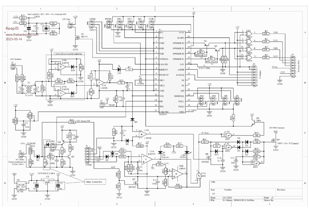 I think you we could do without the LCD header, it gives no real usable information. I'd rather see the other board connections bought together and out on another meaty reliable socket like J6. That would be so neat. I think bringing out LD1 as well as the Over-current Latched indicator would be a great idea, that LD1 is so useful. And as you said, clean up some redundant links and options, it would make a great controller board, "awesome". At the moment I have no desire to go to a Micro as this seems so robust now. The only thing I could wish for is, making the board slightly bigger to increase the width and robustness of some of the finer tracks and Vias. When I assemble the second board, I'm going to solder pins where the LEDS, transistors an FETS are. I found that you only get one or two goes at replacing components with some of these tiny Vias and tracks. I've had two faulty through Vias, one was a bugger to find, just a thought. But again considering you basically made it for yourself, this is an amazing design and it's really worth refining the controller. The power board is just awesome as it is, maybe a tad more room around a few transistor and bypass caps, but that's nit picking, I should have used smaller bypass caps. On the subject of caps, the 4 big Electros were slightly warm to touch after an hour at 2.5kW, I may add two more just to see if there is a change. But the temperature was only around 30 deg, so only 1 to 3 deg above the ambient temp inside the cabinet. . Edited 2023-05-14 18:55 by KeepIS NANO:Inverter V 8.2ks - Linux AvrDude GUI script V4.1 |
