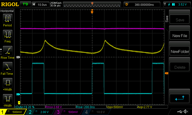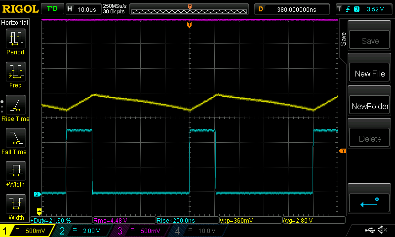 That would be the wrong summary/conclusion to draw - do you really think I would suggest a $250- $350 core as a viable solution for this forum ? Perhaps you could plug in some alternative numbers to see if there are other solutions. Maybe you could try upping the frequency, maybe you could try inductors in parallel or double/triple stacking your Ecores or considering a sendust material or and stacking these can get you to the right solution. As solar Mike suggested & my usual solution is sendust type toroids of which there are some very cost effective hi flux and cool Mu versions with a very high flux density & high saturation ability. Even an iron core type solution is very viable at 20kHz. My parts bins have ferrites and sendust toroids and not a lamination in sight so iron is not usually my go to solution. The UK RS site has the EE55 at 3quid for a pair compared to that ridiculous PMpot core price of 140 quid. If you want to stay with E cores, you should consider stacking 2 or 3 sets with a common winding, Neosid Australia is one source for cost effective EE55 EE70 cores - or was when I used to deal with them regularly. Sometimes physics just cant be changed. Just because you want to squeeze a litre and a half into a litre bottle doesnt mean you will ever do it. If you have fixed limitations such as on time, current, effective cente leg area, material volume, saturation point then energy storage is finite for a given core. Increasing area, volume, gap, frequency or decreasing amps or on time, changing materials or variations of a mix of these can lead to cost effective solutions. The site I suggested will calculate the right (minimum) inductance value & maybe a suitable core. The next part of the solution is to create an inductor with gap and turns that satisfies the inductance value & current requirement staying within reasonable saturation levels. Their inductor core solution suggestions can be used to get more insight into the cross sectional area of the centre leg and effective volume and gap required to get you in the ballpark. The curvature you see in your last cro shot as the current nears maximum is the saturation knee, where current begins to rise exponentially. I try to keep well away from this area especially with ferrites that enter saturation rather sharply. Operating in this region usually causes the capacitors and Fets to have to work harder and increases losses and heat. As you get into saturation things like magnetostriction can also start to cause the core to whistle & click and become audibly noisy. Keep up the good work. Edited 2020-06-07 09:21 by wiseguy If at first you dont succeed, I suggest you avoid sky diving.... Cheers Mike |