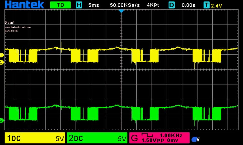 Now for the next test I took the output from the toroid to clamp probes and put them on my fluke in scope mode so as we can see the good sign wave has gone. ![]() Having a couple of cool ones is getting my courage up The PSU is on 28 volts and the current draw is the same around 500mA now I have set the max current to 1.1 amp and it hasn't gone close to that. Now with my next test I will hook up the scope. Edit: hooking up my scope to AC is more than I've done on this scope so some guidance would be nice. Edited 2026-03-06 17:30 by Bryan1 |