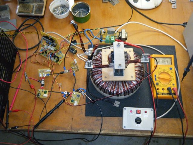 Klaus, I have not been following this very closely lately. Right, the transformer on the VFB is only necessary if you have an earthed system. Look at the circuit provided by madness... it is obvious that any earthing regime will short out one side of the voltage splitter... and your unit will run between 240 and 120 v depending on the impedance to ground of the battery bank. A isolating transformer fixes this... otherwise an opto would do the same thing. The VFB uses DC to control the AC output. The big inductor is only there to damp the very high frequency wave front of the switch. Thats why it is so small in uh.... it is looking to damp up in the 100mhz range, not the 20khz range. The rapid rise in current from zero to maybe 100 amps or more in nano seconds makes the DC look like a ac wave front... bit like lightning I guess. This burns up power showing up as idle current losses. These aren't recoverable without the inductor.... thats all it is for. This inductor can effect the wave form, and maybe warp can explain how or why... but I suspect it is only able to do that because the driver is a bit weak. I think that the damping loads the fet channel up more, and this will exhibit as a magnetic field on the channel side of the oxide gate... 100 or more amps of current must have a magnetic field of some size. Magnetic field can effect the charged electrons on the gate side of the oxide, and maybe the driver see's this...called a wild guess. Mad is the expert on these things now, as he has been forced to experiment with them much more than me. I have plenty out in the field now, and there are no problems but for one that the solar controller failed short, and over voltaged the 8010 board. But 15kw surges are normal, and they appear very very robust thus far I find having a board with NO electro caps is the best for testing with a 15amp current limited power supply. The fets won't blow when there are no caps, and a current limited supply there ......so you can do awful things to it, and it will just laugh. The thing to watch out for is the driver chips. Some have been questionable, and without the non cap board, I would have blown a lot of fets trying to find the shabby ones. I am disappointed for you that this did not just get up and work... mine do, I just wish yours and mads did. ..........oztules Village idiot...or... just another hack out of his depth |