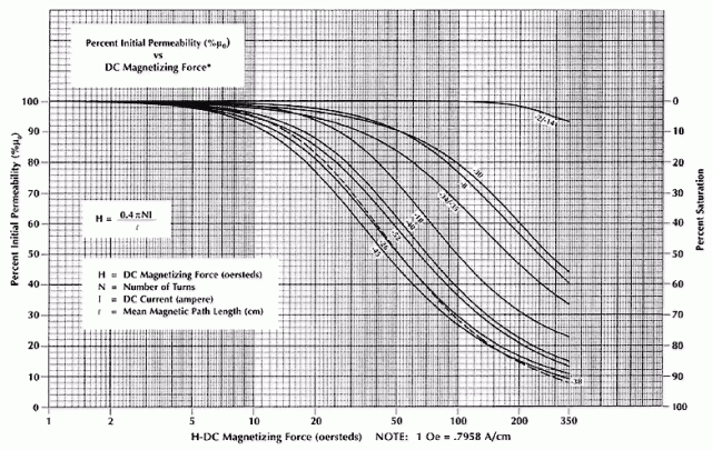 This is why T400-26D will not work. Sorry about the image quality, it is all I could find. Horizontal axis is magnetising force (ampere turns). As you wind up the current to perhaps 200 orsteads, the inductance falls off significantly, in fact -26 material, the lowest curve is the WORST possible material for a very high power design. Now look at -2 material, the highest curve. At 200 orsteads it still has about 98% of its original inductance that it had at zero current. Dash two material is also the least lossy at high frequencies. ![]() With the T520-2 monster toroid I suggested earlier, a workable design is entirely possible, its the only powdered iron material that stands any chance at all of working in this application, and even then it needs 100 or more turns. . Edited 2020-06-12 09:42 by Warpspeed Cheers, Tony. |
