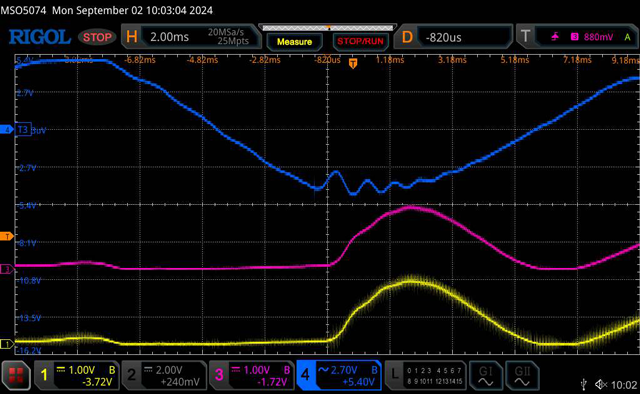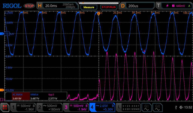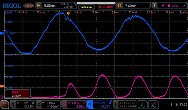 Just a quick update, I spent the day with the DSO, comparing the DC input current waveforms. I can confirm that at 510A combined DC input, both Inverter stages show EXACTLY the same current sharing at 255A each, right from when the load first starts and throughout the entire 3 second startup waveform, they are exact mirror images, current load sharing is 100% from Idle to whatever you can throw at. The total current draw is 40 to 60 amps less then starting this load with the single Inverter version. I still haven't captured the AC voltage under this load, but I bet it's holding higher, I was so busy with the two Current sensors. BTW the peak current meters on the front panel both registered just under 260A each as well, I went through and really got those meters calibrated together. Edit When I said I got those meters calibrated together I meant I calibrated each to indicate exactly the same current for a given Hall Current sensor output voltage, which for my meters, is the sensor output voltage corresponding to the full scale reading of 600A DC. _ Edited 2024-09-02 08:06 by KeepIS NANO:Inverter V 8.2ks - Linux AvrDude GUI script V4.1 |