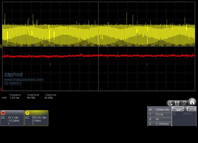 I guess with your huge DC-link capacitors the proportion of 100hZ ripple on the bus voltage is very low ?Edited by zaphod 2018-06-26