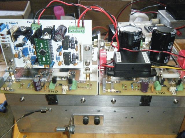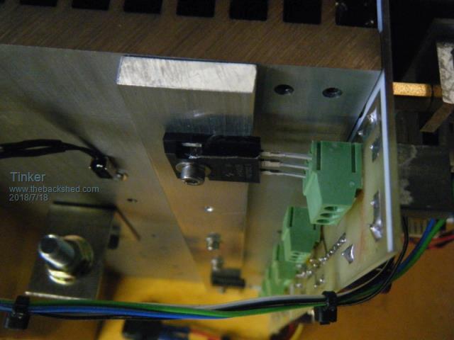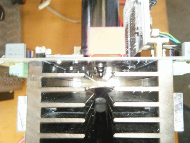 There was a short sunny break today to allow full power testing of inverter #4. This was the result: ![]() It ran as expected, in fact better than that. Of course, using a 2.5Kw rated toroid with the original 320v winding and having only a 12.5mm sq primary was asking a bit much from that to handle the 97 Amps coming from the battery. .As a result it took not long for the primary wires to register 90 degrees on my infrared thermometer. I turned the power down then. But the heatsinks with the 12 HY4008's installed got barely lukewarm. So the thing would easily handle a twin stack Aerosharp type core toroid with just 12 Mosfets. Me thinks now that using 24 mosfets in my other two inverters was a bit of an overkill. Besides, it is a lot easier to match the on resistance of the paralleled Mosfets in just batches of three. Mine were matched to be within 0.02 milli Ohms. To continue my build description, this is how the mosfets are mounted on the vertical entry terminal blocks. ![]() Good clearance for the 'legs' but they are left at almost their full original length to get the mounting screw in between heatsink fins. I suppose one could argue this gives more cooling area for the 'legs'. Now a few pictures of how the lot fits together. ![]() Looking from the top of the power boards we see how the control board mounts on spacers on the left. The board must be located on the long heat sink side as one spacer conducts the +battery voltage to the board for sensing. On the right is that little DC/DC converter mentioned on an earlier page. One of the two common links between the boards are the two -battery copper busbars with the connection between the boards for current sharing. The positive common link is, of course, the large heat sink. ![]() Here we look side on to the control board and see how it is mounted. This comes off very easy, just unplug the headers & power wires and undo 2 M4 screws to the brass spacers. The spacers are a M4, 15mm long, male/female thread version. ![]() This is a view from the other side of the control board. Mark, if you look closely you can see the advantage of having screw terminal capacitors . The busbar can fit partially under them, thus saving board area. More area = more $.![]() Now a picture looking at the upper end of the heatsinks. This shows how the extended heatsink base width allows above first fin clearance for the screw heads on the PCB underside. Sorry about the poor quality pic. ![]() Next an end on view showing the gate drive wiring. As mentioned, they are all the same length and I plaited them to bundle the 3 wires neatly. Last picture is of my switch box which plugs into the 8 pin header. This proved very useful for inverter #2 & #3 during testing. It could be used as a permanent control for this inverter, it does all that's required to run it. ![]() To be continued. The next part describes hoe I set up and then tested this inverter to run successfully first time. Klaus |
