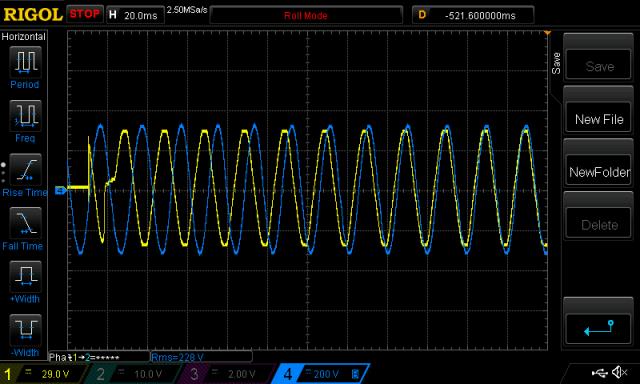 And so I applied 30V to the 680R + 1N4007 + TLP523 opto.
