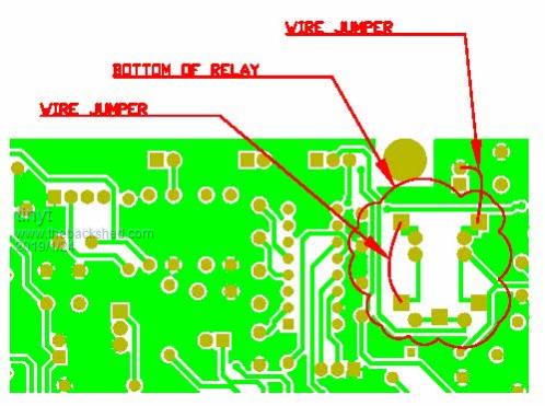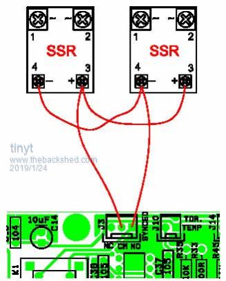 Here is the connection of the solid state relays (input). This will apply +12vdc to the SSRs when the on board relay K1 is turned on. This is top side of the PCB.