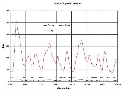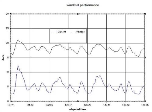 the maximum power occured at a windmill current of 11A and a windmill voltage of 17V. The lowest power was 1W at a windmill voltage of 5V and 0.2A This gust would not have been captured if the windmill was directly connected to the battery, ie, without the maximizer.