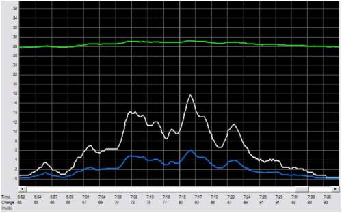 the blue line is Battery charging current