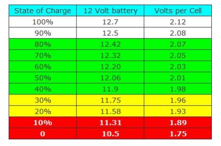 ![]() lead acid rule of thumb starting point for AT REST volts. so 46.5 is probably around 25% with newer batteries and a trickle power drain. edit wow image upload hates green jpg sorry. I'm confused, no wait... maybe I'm not... |