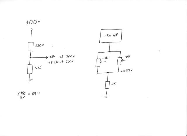 Here are some suggested resistor values for a 200v to 300v control system using Mike's original circuit.