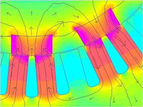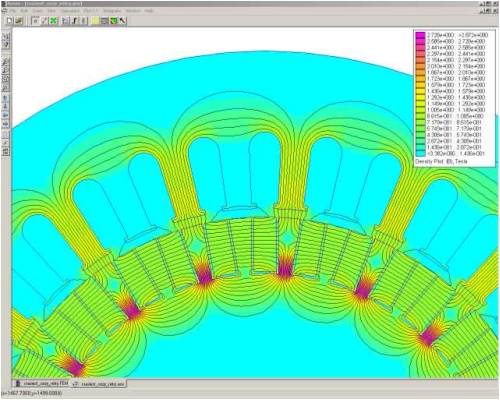 You will see that the flux is concentrated exactly where he wanted it, in the teeth where the coils in question was seated. Every line leaving every magnet is closed somehow. Note the rotor, all those lines joining up the magnets return circuits. If you made the rotor out of aluminium, flux would jump from the front of the magnet straight back to the back, and never see the gap you want it to jump. Thats why you must have steel backing the magnets so the return path is assured. In the axial flux types, we use heavy steel plates at least 8mm thick to achieve the same thing. We use aluminium as a jacket precisely because it does no affect the static magnetic lines and does not encourage leakage of flux from the front to the back, it just mechanically holds the mags in place (dinges used epoxy instead I think). We cannot use Aluminium if the magnetic fields will cut it.. ie in the stator, as we just generate enormous eddy currents. Or any place where alternating or moving fields may cross the al. The best way to do it is to have a steel rotor with mags facing the stator, held in place by some magnetically inert material. Think Magnetic CIRCUITS, and you will do a lot better. Pntrbl, It's all to complex for me thats why I suck up to Dinges and conn him into doing it for me.
