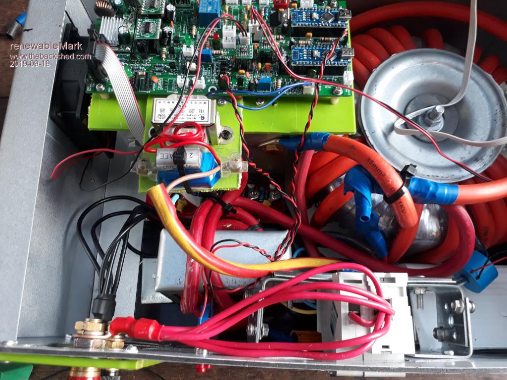 Hi Rev, thanks, she's pretty rough but hopefully it will do the job fine. The nano screen shows that voltage, haven't fitted that yet. Need more short standoffs. You can see the white ribbon cable above the torroid for it, but screen is out of the shot. Cheers Caveman Mark Off grid eastern Melb |