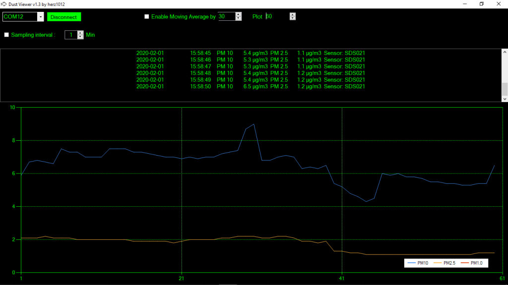 I left my sensor running in my office over night When I went to bed PM2.5 was 1 - 1.2 but this morning it was reading ~10 I checked the EPA site and they read 15 for PM2.5 so that's close considering I am reading indoors. Not that I needed the sensor to tell me. The lungs do that without any prompting. Bloody easterly weather brings the smoke haze back. Jim VK7JH MMedit |