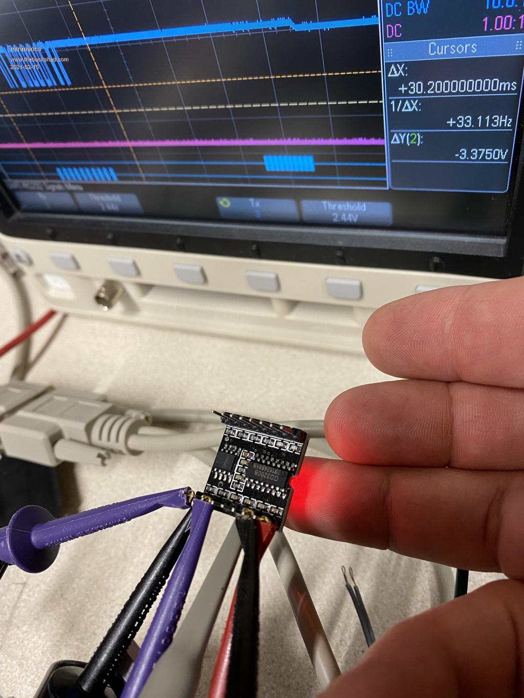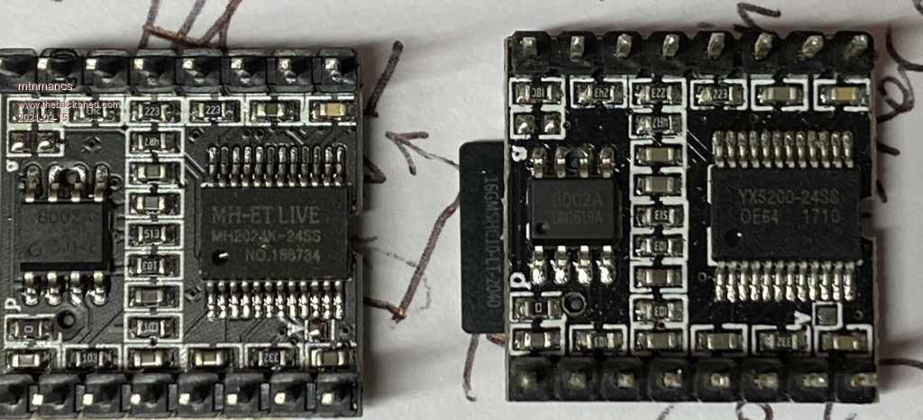 So, both of these modules work (I can get both to play tracks), but the MH2024K certainly doesn't look as clean from a serial comms standpoint, and it is also noisier from an audio standpoint as I mentioned in my post a few days ago. The audio noise is annoying, so I'm going to dig into that more.