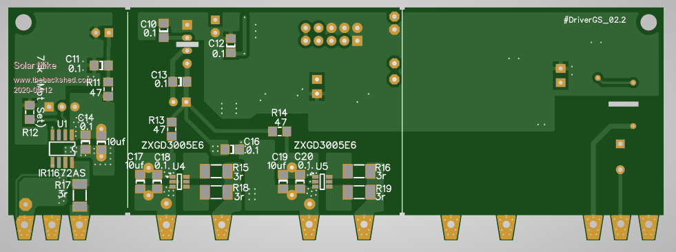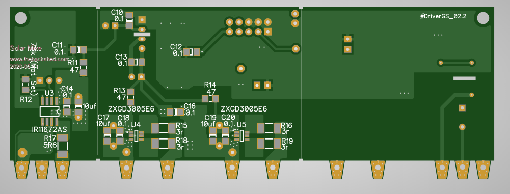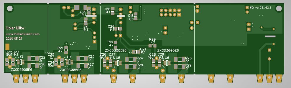As these drivers have limited current drive of only 2 amps, have implemented supplementary boosters for each mosfet using the ZXGD3005.