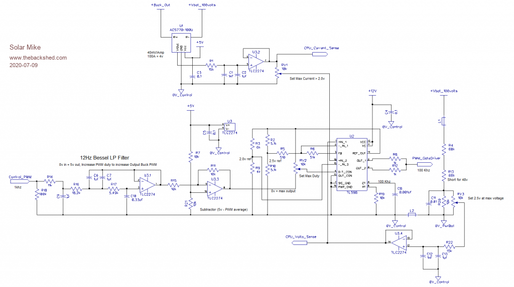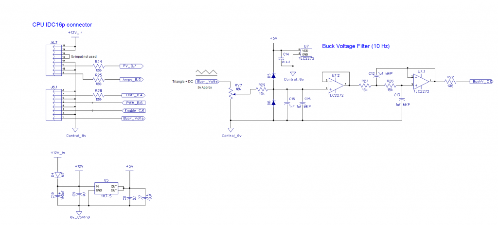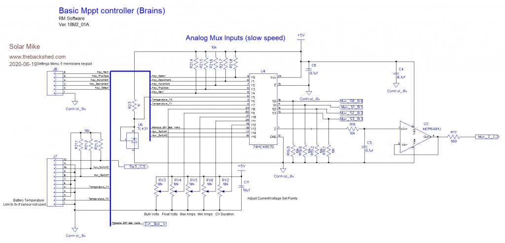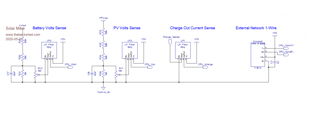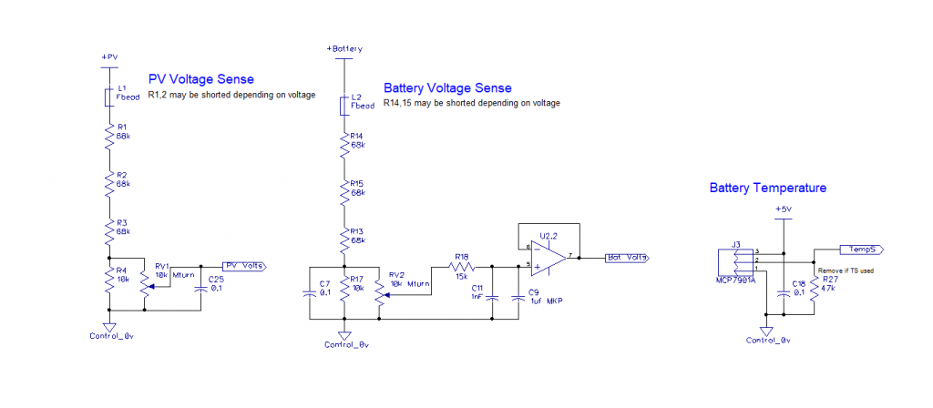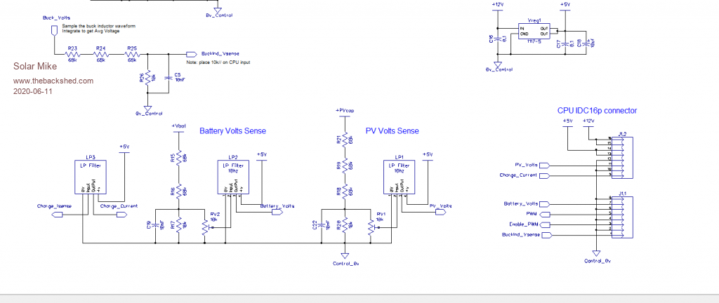 Voltages for mppt calculations made via Buck Inductor voltage sample, as mppt will be used at all times because in a live system with varying loads which can be quite large, even in float mode near max charge current maybe required. Switching from mppt to PWM mode will only be used when load currents are very low.