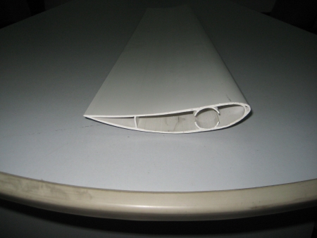 You could avoid the round pipe altogether and just use a thick cross-brace area, wide enough for an insert through it vertically. They make specialized drill bits for plastic that will not crack it when you tap the holes. You probably are better off keeping the camber (vertical thickness) relatively thin for the aerofoil. The wooden blades of Hugh Piggot tend to be at a 7:1 width to height ratio or better. Another thing Hugh Piggott did was cup the top of the aerofoil like a swoosh to channel air. Go Huskers! |