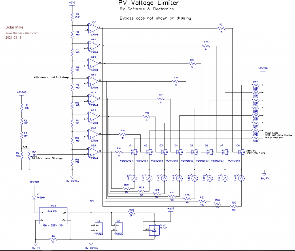 Thanks for the comments, fully aware of that, my situation is am testing out many different DIY controllers on the same PV array, some higher voltage rated than others, the limiter is to make such testing easier.
