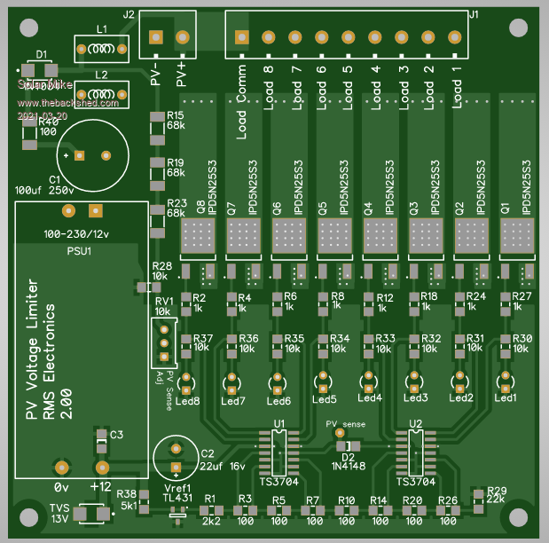 Initially the aim was to reduce the peak array voltage of approx 200v when the panels were unloaded down to 160v, 5 volts higher than the mppt value of 155.