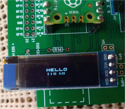 Thanks. What was written on the board works. I don't think I'll need the SD card on Pico2. option system i2c gp16,gp17 followed by option lcdpanel ssd1306i2c,rl,2 also works, but there's some wierdness with the text--some of the pixels are not displaying. > cls > text mm.hres/2,mm.vres/2-15,"HELLO",cm,1 > text mm.hres/2,mm.vres/2,"THERE",cm,1 ![]() PicoMite, Armmite F4, SensorKits, MMBasic Hardware, Games, etc. on FOTS |