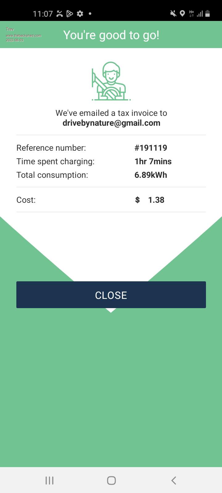 At IKEA Canberra, 4 1/2 hrs to fill T-Rev battery up. Only 2 phases connected. Free power. Total expenses for electricity to drive from Kuttabul, Qld to Canberra, $39.01 Edited 2022-08-04 20:16 by Trev Trev @ drivebynature.com |