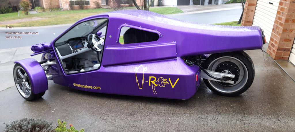 Jim, thanks for posting. Interesting. Pete, yes I did make doors but motorbikes don't require doors, so never been on since rego. Driving in the rain is no problem. Here in Canberra on Thursday was pouring rain. I still drove in it. Did around 40km driving around Canberra. Max range depends on speed, terrain, wind, temperature, rolling resistance (tyre pressure). Generally speaking 200km at 100kmhr, flat ground, smooth road, no wind. Town driving around 360km range. I can supply the parts, don't know what you consider as reasonable price. Trev @ drivebynature.com |