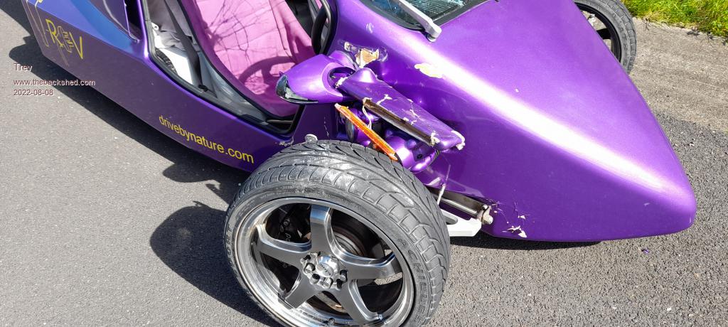 Yes Pete, I am fine. I was not in the vehicle. One of my nephews brought his dad's car trailer. All was good. Got home safe. Spare time has been limited, so repairs are slow. T-Rev body is now repaired and undercoated. ![]() It was the back of the front right wheel the truck hit. The mudguard was flung about 50m down the road. No repairs have been done on the guard or wing yet. The lights survived the hit. No damage done to the swing arms, ball joints, or hub spindle. 1 bent bolt and slight bent rim. ![]() ![]() Edited 2022-12-03 12:32 by Trev Trev @ drivebynature.com |