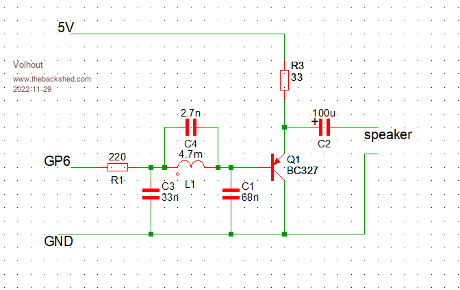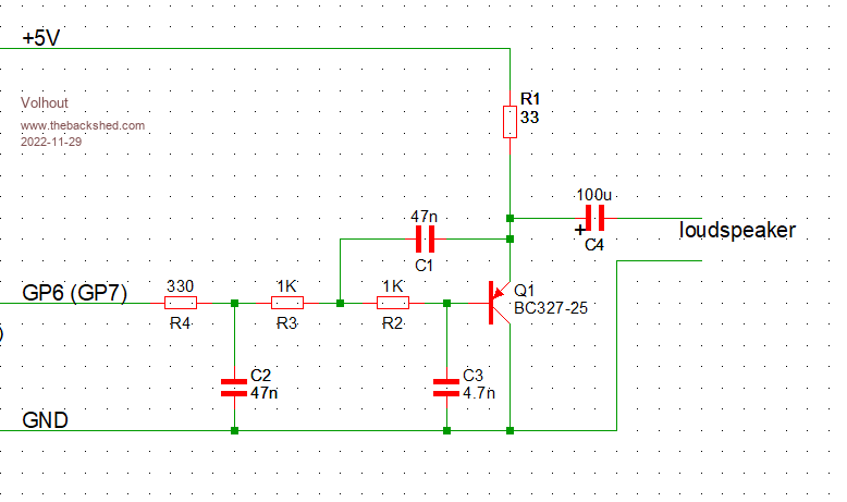 The simple one transistor circuit, without filter, works well. I tried it earlier. https://www.thebackshed.com/forum/ViewTopic.php?TID=15362&P=1#194562 It does not sound horrible, not hi-fi but as good as a tiny speaker can sound. |