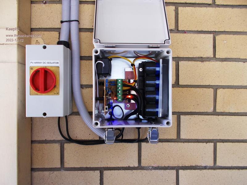 FYI: Water from 150L HWS is still warmish despite us using it with abandon from midday yesterday. Got to love hot weather (but not for the panels though) Raining and storms until 6.00:am. Power outage for a few hours last night - felt guilty looking out and seeing the only visible light was from the storms setting our security lights off and lighting the yard up like a stadium - Turned them off. 6.30am Rain stops, gets little less gray outside, controller starts flashing slowly. 7.00am Flash rate increases. 8.00am Pulsing for a total discharge time of 700ms each second. 8.34am HWS switches itself off. Thermostat set as high as it can go. I think we're set for summer! - No more off peak water bills. Six X 10 year old 180W yellowed faded panels laying flat on a proverbial hot tin roof, siting on our pergola with almost no slope on the west side of the house. Unless something changes it looks like I've reached the end of this small part of my off grid adventure Almost Christmas - can't believe it An Early Merry Christmas to all on the forum. Mike. NANO:Inverter V 8.2ks -Â Linux AvrDude GUI script V4.1 |