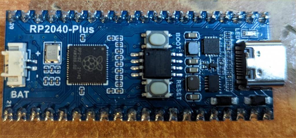 This is my favourite module Waveshare RP2040-Plus USB-C Battery circuitry Boot and Reset 16MB flash total pin compatibility |