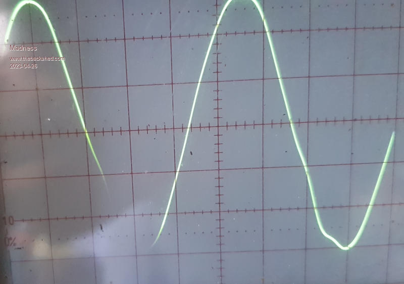The head-scratching continues. After running so well on the small test rig, single Aerosharp core, 4 FETs in total I can't say the same about my new big inverter. This big inverter is 3 cores and with my big power board with its full 24 FETs. I was able to increase u = 30000.0 * sin(t); to 32000.0 in increments on the small test rig and the output voltage was correct and stable from 22000 right through to 32000. The big inverter is not the same, I could not alter the output voltage at all it went to 370VAC. The only way I could correct this was to reduce u to 24000, then I could adjust the voltage and set it to 230V. It also has this small kink in the waveform.Due to my phone camera's shutter speed, it missed capturing the full wave, the missing part looks identical to the bottom of the wave to the right. ![]() The GTI refused to connect with this sub-standard sine-wave. This same inverter runs perfectly with the Murphy version of the Nano1 code, voltage regulation works as it should and the sine-wave is perfect, the only problem is I can't connect a GTI. Edited 2023-04-26 10:40 by Madness There are only 10 types of people in the world: those who understand binary, and those who don't. |