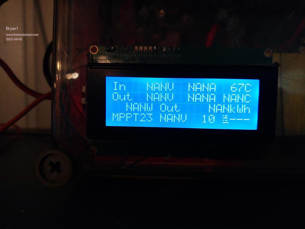 G'Day Guy's, Well got the MTTP all setup today and looks like some fault finding to as this is the lcd output ![]() So some help is needed here as why the volts etc isn't showing Cheers Bryan |