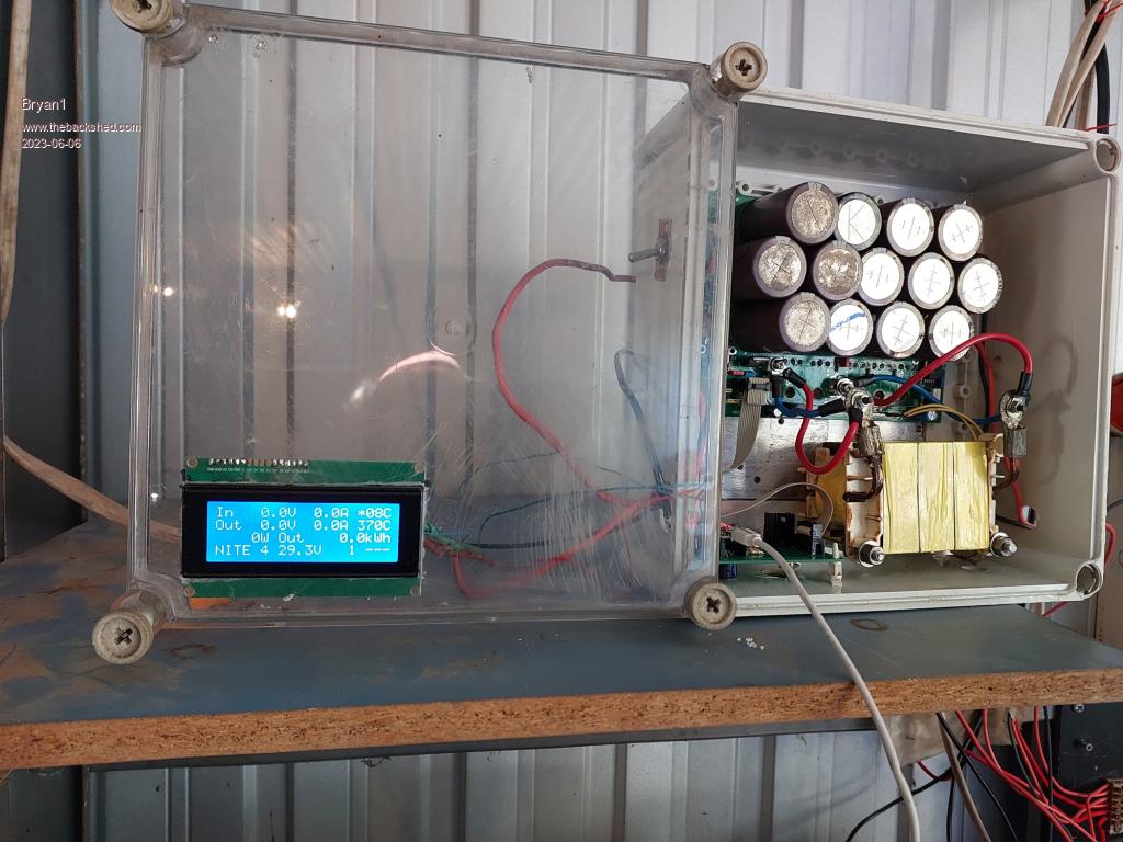 I think it's time to calibrate your mppt connect to the nano via the usb socket with the laptop It might be 9600 baud (or it could be 115200 baud.) but try 9600 first use the Arduino program to connect to the serial device. send ? to it (then ENTER) you should get a menu FIRST YOU NEED TO GET THE MENU BEFORE YOU CAN CONTINUE send Z to set some defaults. do this first. Once you tell the mppt what voltages are what, and zero the current sensors and then calibrate the current sensors you will get it working. how I do it: get your multimeter, send ? and then measure the input voltage with the DMM send C to the mppt and it will say "what DC volts IN is this?" tell it what it is same for the battery or mppt OUT terminals. measure that and then send D to the mppt which will ask "what volts is this on the output". tell it that. Now you need to be able to measure current. I use a cheap UNI-T DC clamp meter but there are other ways to do this. Disconnect the solar INPUT. We do not want 100V DC when we play with things. Disconnect the mppt OUTPUT (or battery, same thing) We do not want 1000 Amps potentially giving us nice surprises. Get a current source. I use a bench power supply. It gives me 6 Amps even when connected to a short circuit. You can make one. 12V car battery, 60W headlight globe. this will be about 5 Amps. power mppt up with 12 supply. Have nothing connected to input terminals AND nothing on output terminals. from the menu, send G to tell the program what zero amps is for the INPUT. it will think for a bit. And then print the menu again. Send H to tell it what zero output amps is. Again a think and then the menu again. Now apply a known current across the input sensor. Positive of the current source goes on the SOLAR + terminal. negative/ground goes to ground. Send E and tell it what that Amps is. Now we have input current sensor calibrated. apply current source to output current sensor. Put the wires on the sensor terminals for best effect. Again you need to put the current through the sensor in the correct direction. Send F to tell it what this current is. Now we have both current sensors calibrated AND the two voltages. Zero the energy total, so send N for that. Set up the charge voltages as needed. To have no battery tempco, just make BV tempco = 0.0 Try to avoid leaving anything as NAN I like a 6 hour absorb time, I set float the same as absorb. I do not bother with equalise We can finish this once you get a menu and can get a few things calibrated. Edited 2023-06-05 21:24 by poida wronger than a phone book full of wrong phone numbers |