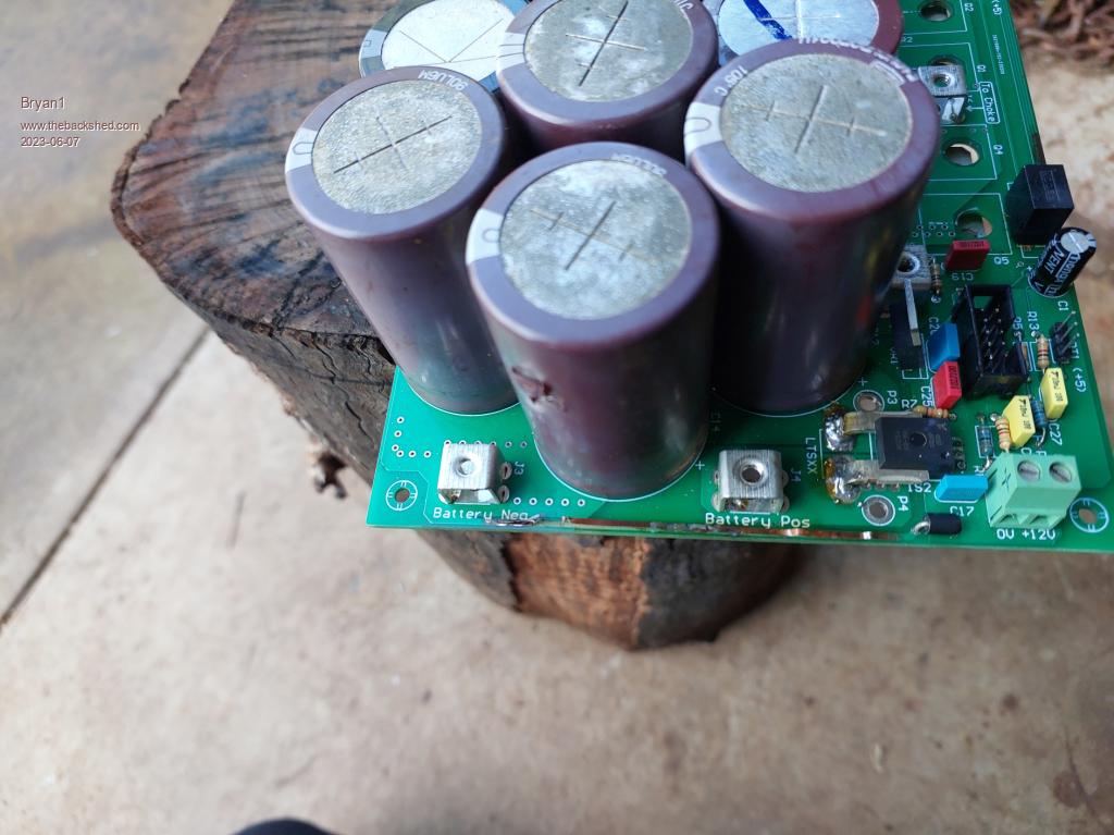 Decided to take the board out of the box so I could test on the shelf and this stuck out like the dogs B's ![]() The only way i reckon could of happened was when I was probing I did hit the choke connection and got a spark So I'll fix the track on the board and test all the caps to ensure they are OK. I got a new 9 volt battery for my clamp meter and did see the input amps were 14 amps and the lcd was showing 9 amps so they will need calibrating again. The fun continues Cheers Bryan |