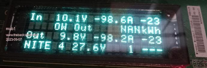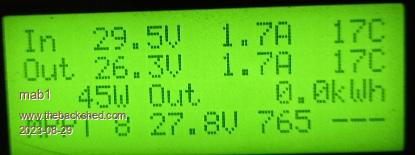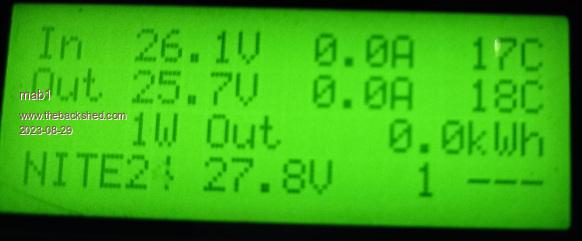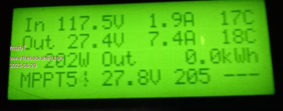 I've tried a recal of amps, zeros and input volts (i was getting >100% efficiency to something was calibrated wrong ) and see what it does tomorrow morning with full sun. Edited 2023-09-04 10:46 by mab1