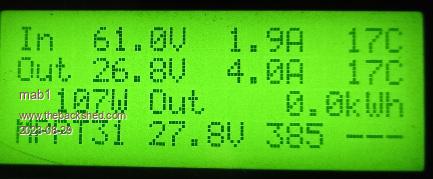 I think there's a cal error on Vout - should be 26.2v, and i seem to be getting 1W in night mode. But i need to go back into cal anyway as I'm still running 20kHz and want to follow recommendations and run it at 40kHz.