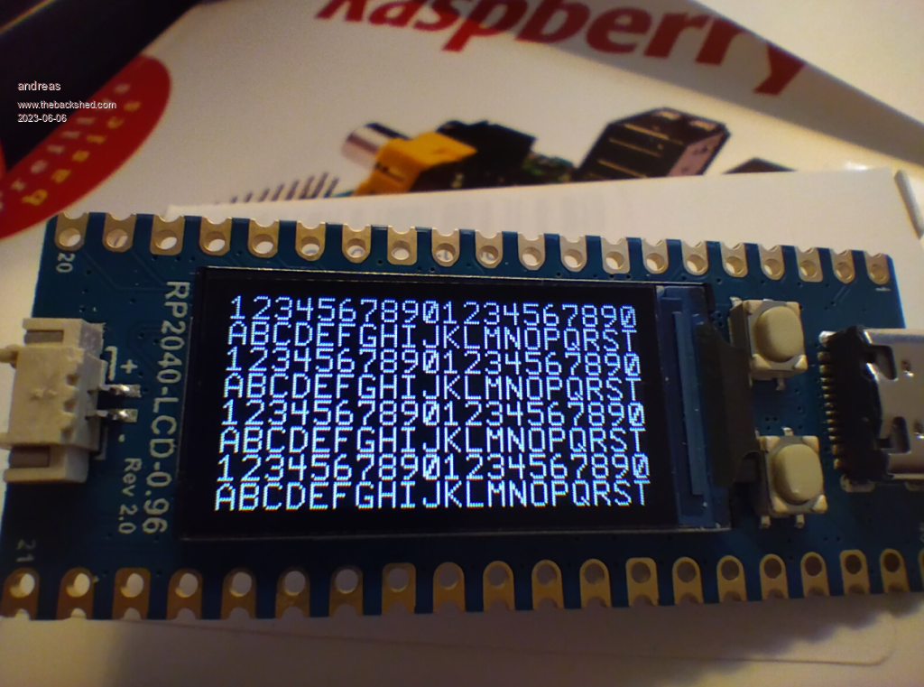 It is not possible to use GP12 within LCDPANEL as RST - PicoMite complains that Pin GP12 is already used within System SPI. That was the reason I tried GP0 This costs me hours and finally, before giving up, I tried GP0 in that place. ![]() Without any settings on standard text output I count 20 chars by 8 lines on the display. -andreas |