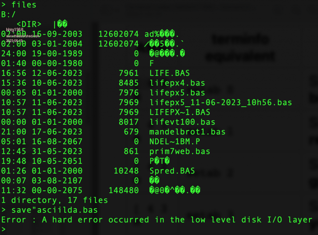 ... and there are strange symbols in the directory, and strange files and filesizes... |