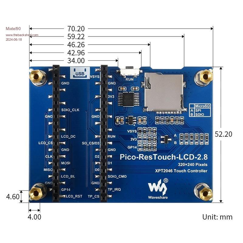 This is just playing. :) The display is landscape. The Waveshare module is fixed to this PCB using spacers in the four holes. Normally you would plug a Pico into the rear of the display module in a "vertical" layout with the LCD in landscape. I've designed the board to simulate a Pico. The pin arrangement you are seeing is from the top of my board, i.e. the mirror image of looking at the back of the Waveshare module. ![]() Mick Zilog Inside! nascom.info for Nascom & Gemini Preliminary MMBasic docs & my PCB designs |