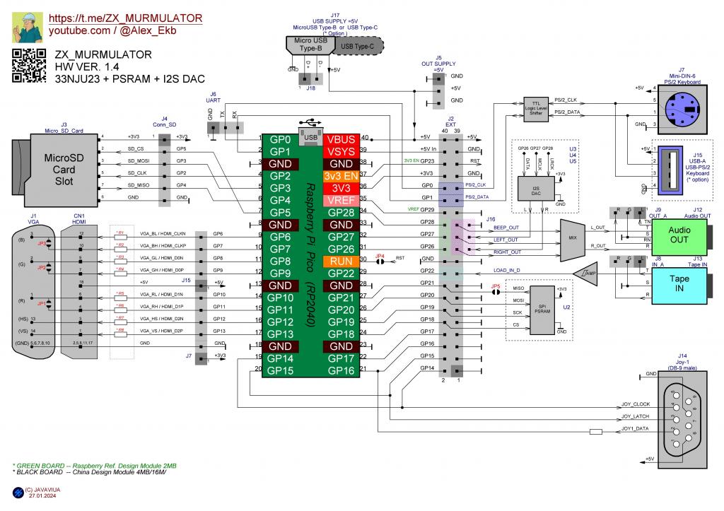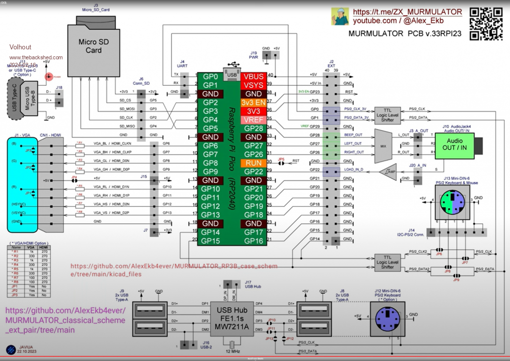 The intention was to include the guts of a VGA-hdmi converter I am using a development platform called MURMULATOR already version 1.4. It uses a VGA222 video output combined with HDMI and can connect an LSD screen and a composite video output adapter, and all this is connected to the same pins (but not at the same time :)) It turns out to be a very universal connection of video outputs. Also in the latest version, I2S sound chip and an 8MB PSRAM RAM chip are optionally added. Currently working on it: - Four different ZX-Spectrum emulator projects - NEC emulator - GB and GBC emulator - PC XT emulator and other projects including PicoMightVGA were ported.) |