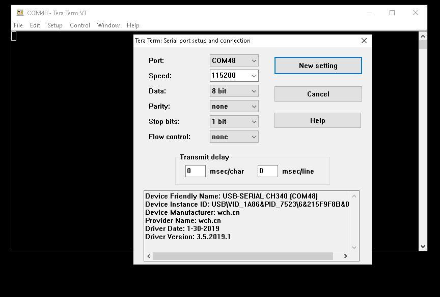 I found this from Peter's exchange with Bleep: MAKE SURE THE TERMINAL PROGRAM IS SET TO 115200. It tells the CH340 what baudrate to use on the TTL side over the USB descriptor. This is not the same as a CDC port where the baudrate setting doesn't matter Bill Keep safe. Live long and prosper. |