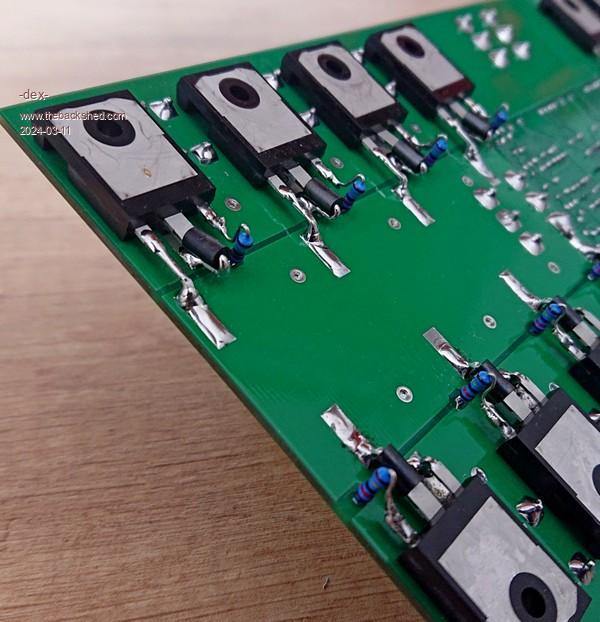 Great to see another build. What's reason for not having the gate resistors on the PCB? |