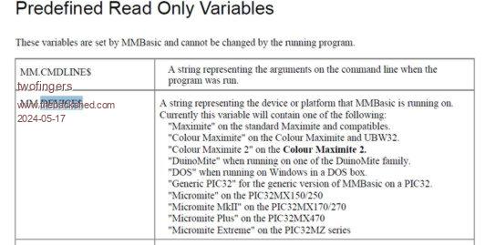 Martin H. said  Another possibility would be to rule out that it is neither Picomite (Game*Mite) nor PicoMiteVGA and then use the methods that MMB4W uses and hope that it works on CMM2 and MMB4L