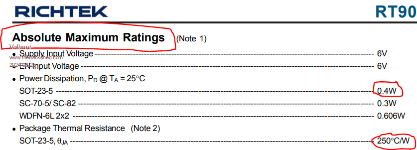 Hi Mick, 170mA + 50mA = 220mA (pico = 50mA when running 133MHz) 5V - 3.3V = 1.7V 1.7V * 220mA = 375mW ![]() It is within spec, but I would not rely on it. It will get extremely hot, and when it reaches thermal shutdown, you will loose both WIFI and Pico, or they run very unreliable. Volhout Edited 2024-06-25 19:31 by Volhout PicomiteVGA PETSCII ROBOTS |
