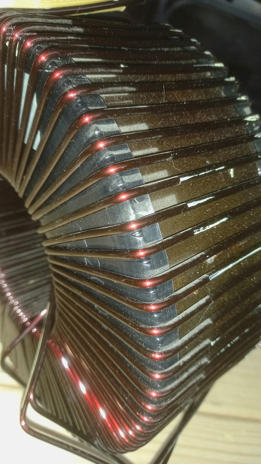 Aw, go on, haver fun and unwind it completely .Its always good to know what the core looks like and you can get its area precisely for the 1 tesla flux calculation. Should you choose to follow my advice then to keep the cores lined up precisely, use a (split and bent to size) waxed PVC tube section while they are epoxied together.To get nice rounded edges to be kinder to your wire (and hands pulling it tight) I suggest you make up 2 plywood disks to epoxy onto each side. These are much easier to round the edges of, with no loss to core area. There is plenty of info about winding stacked cores on this forum. |