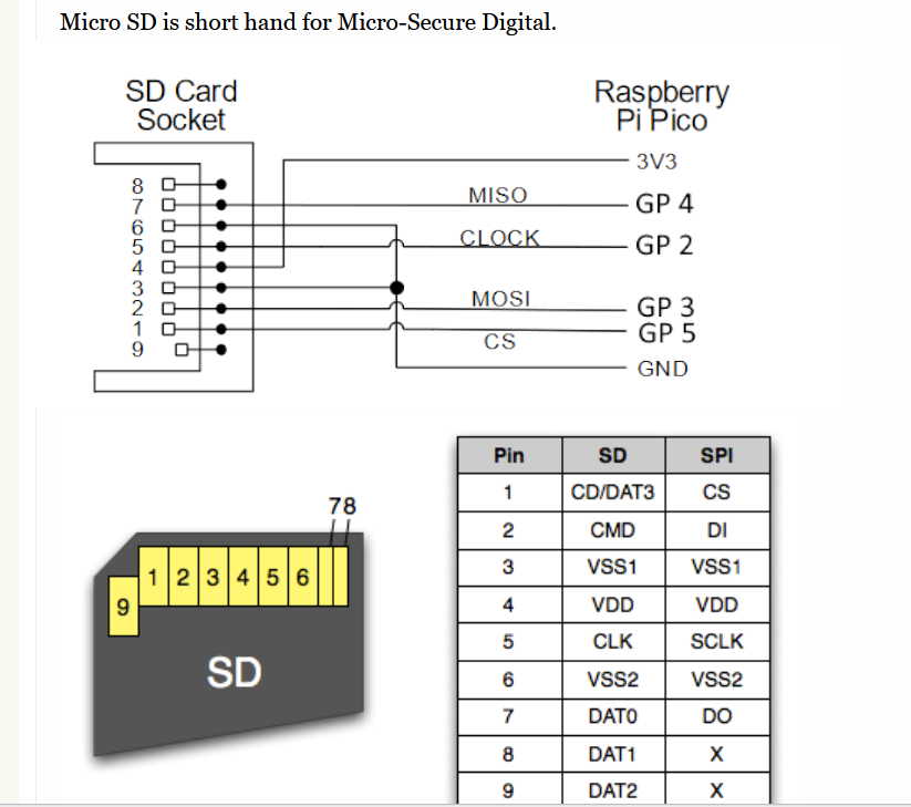 You can use any pins (except GP12 to GP19), I just happened to choose those. Just use OPTION SDCARD as normal |