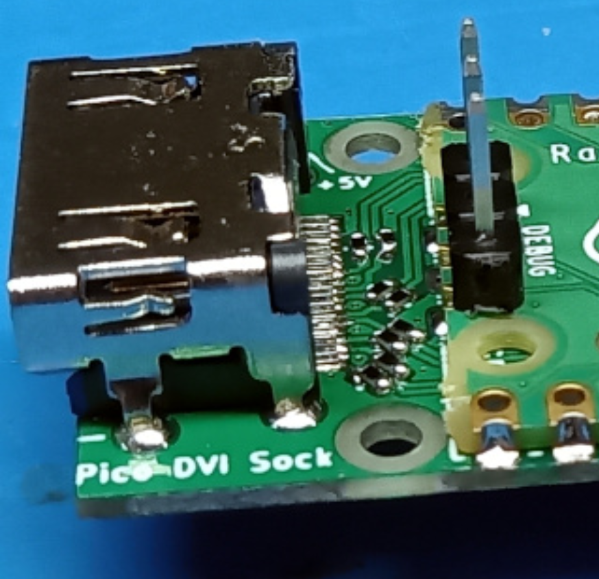 The smd resistors on this board are 220 ohms what could make a difference? https://learn.adafruit.com/adafruit-dvi-sock-for-pico/overview Jan. Hi Jan, I do not know. I bought it from a German distributor, I took adafruit as an example because of its internationality. https://www.reichelt.de/raspberry-pi-dvi-sock-fuer-pico-rpi-pico-dvi-p306670.html?search=pico+dvi Now I see in the second link that the original developer Luke Wren uses the board labeled "Pico DVI Sock" on his photo. https://picockpit.com/raspberry-pi/raspberry-pi-pico-video-output/ I happen to have this one as well. But I will also get the one from adafruit. And as I wrote above, I'm waiting for the board (from Peter) in the collective order and an Olimex is also on the way. There is still a lot of room for testing! Hopefully we will find the cause. Matthias |